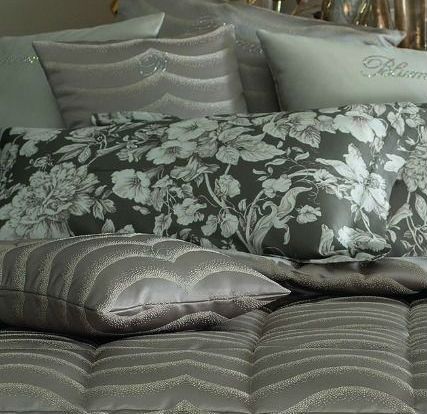 Removable decorative cushion in jacquard with a sensual wave pattern and Blumarine monogram in Swarovski crystals.